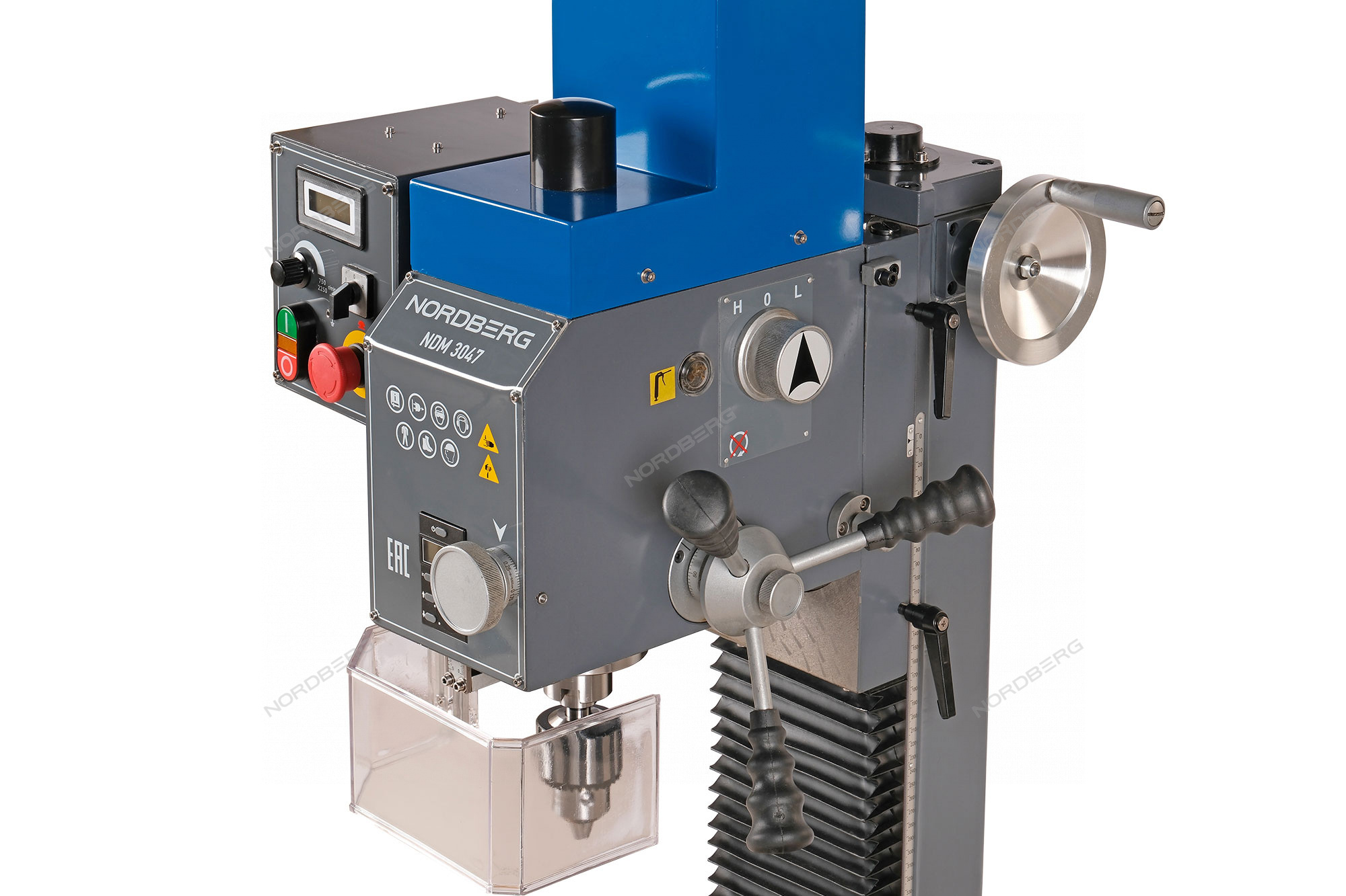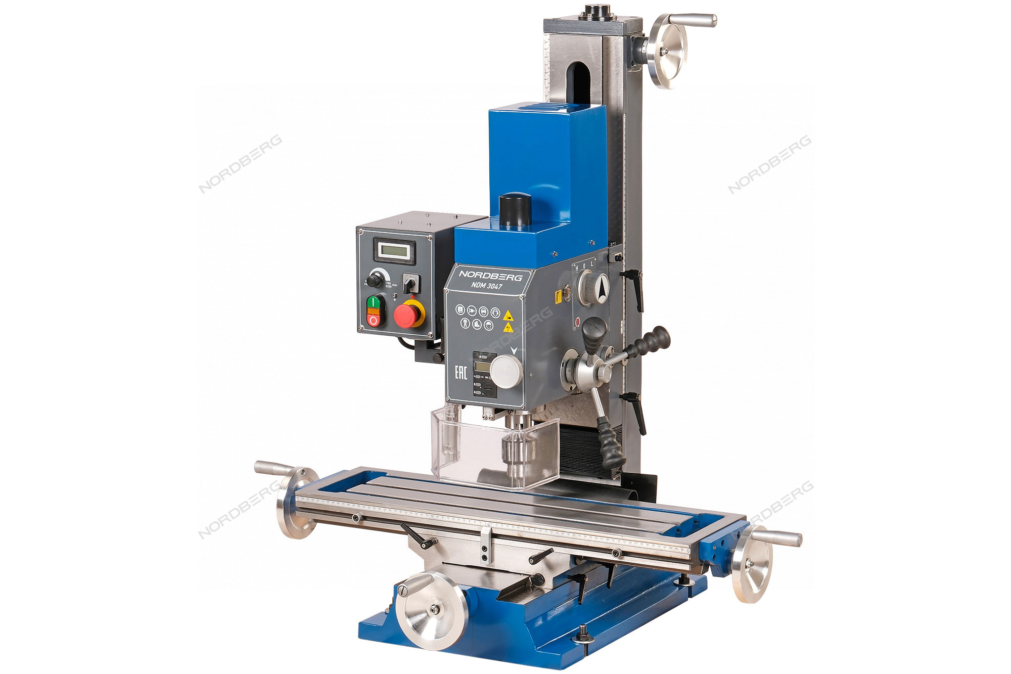 Сверлильно-фрезерный станок NORDBERG NDM3047 – универсальный настольный станок, предназначенный для фрезерования, сверления, нарезания резьбы и других видов механической обработки металлов, полимерных материалов и т. д.