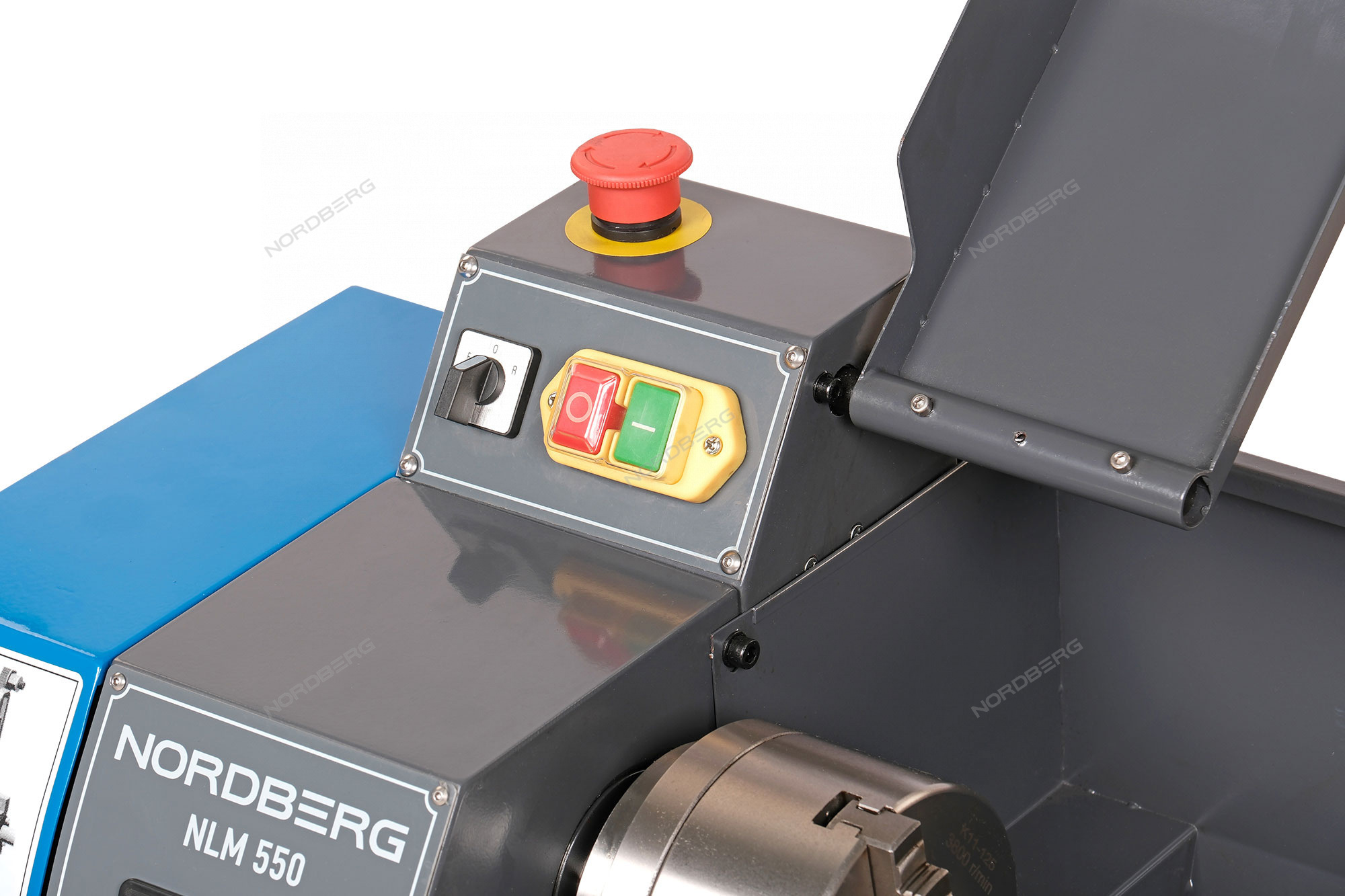 Защитный экран с концевым выключателем защищает оператора от стружки.
