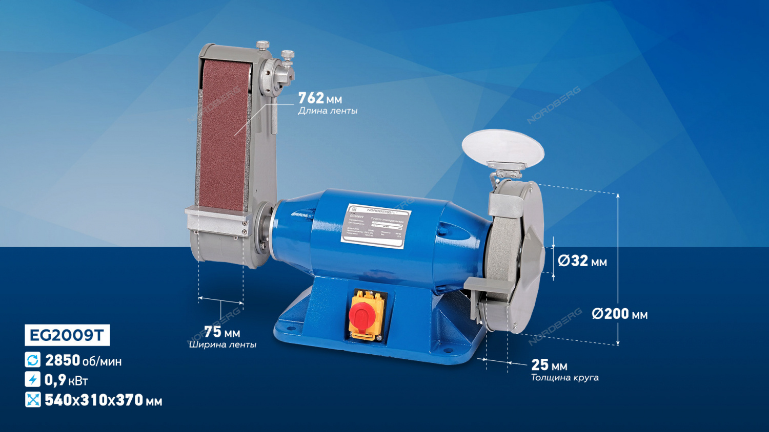 Заточной станок профессиональный диам. 200мм с шлифовальной лентой, 220В EG2009T