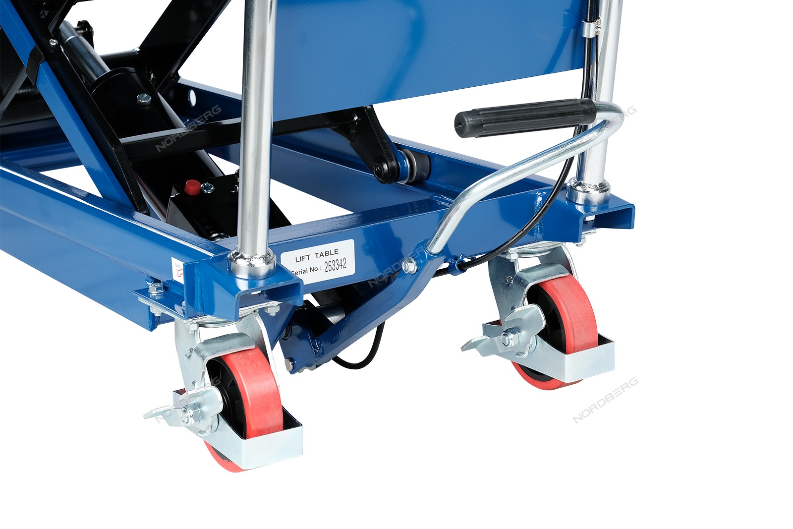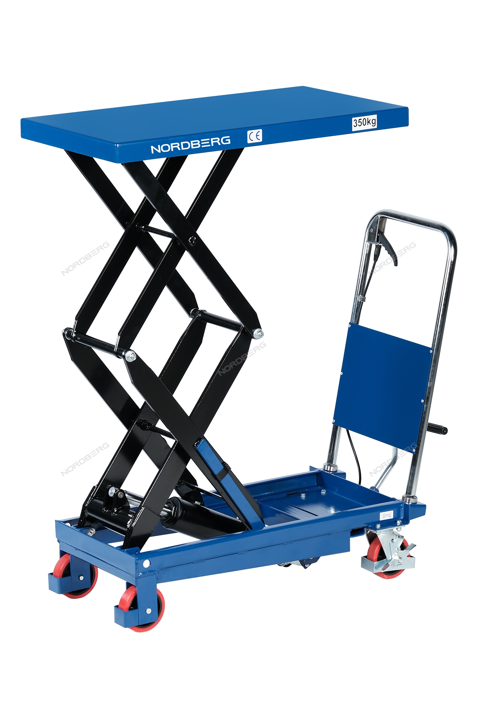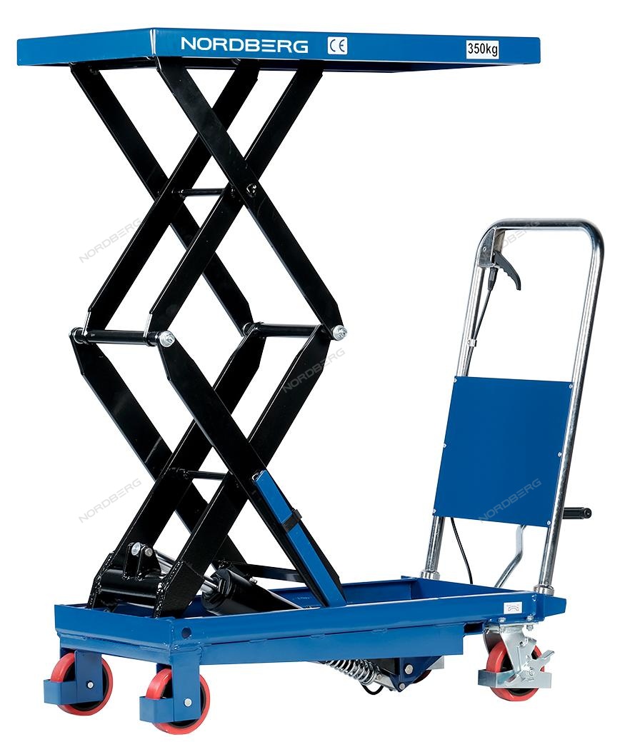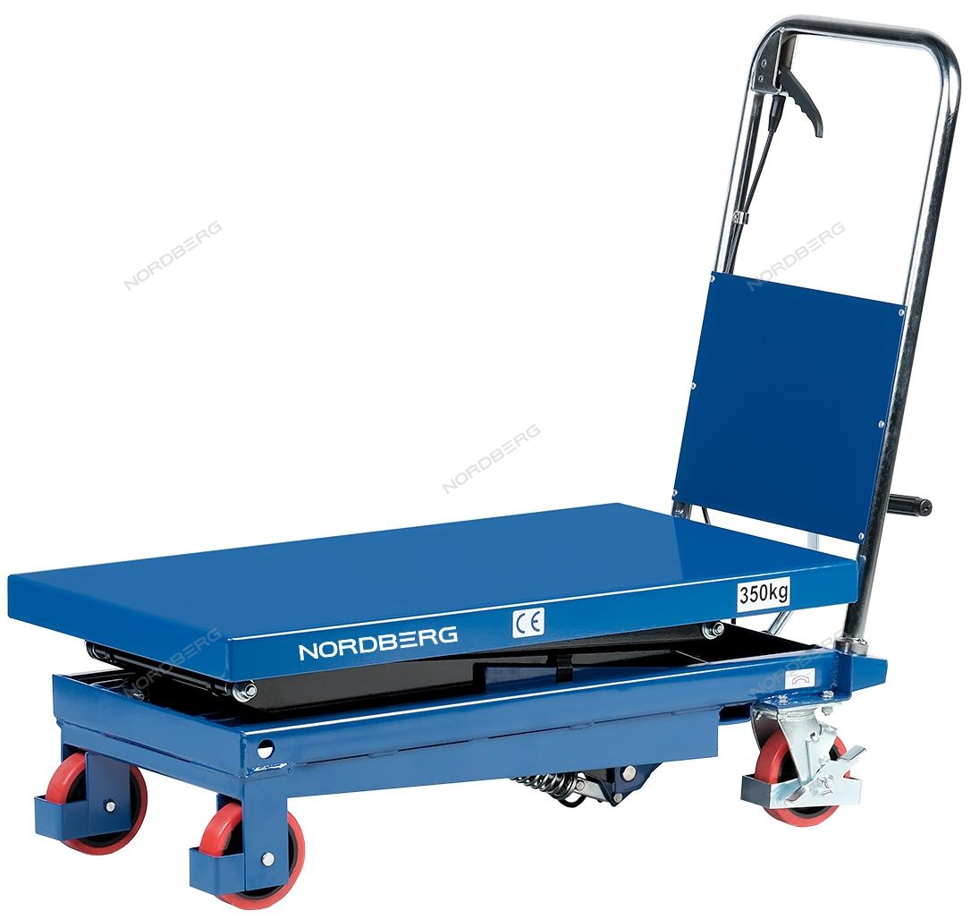 Подъемный гидравлический стол N3T350 предназначен для подъема, опускания и перемещения груза. Конструкция представляет собой совмещение платформенной тележки и стационарного подъемного стола. Подъемный стол имеет гидравлический ножной привод, который позволяет произвести быстрый подъем груза. Опускание производится путем нажатия рычага на ручке подъемного стола. Подъемный стол оснащен стопором, который позволяет надежно закрепить положение в поднятом состоянии. Гидравлическая система позволяет столу опускаться плавно, обеспечивая безопасность работ с грузами. Тележки с подъемным столом с ручным приводом мобильны, эффективны и надежны. Они позволяют не только приподнимать грузы, но и перемещать их на расстояния.