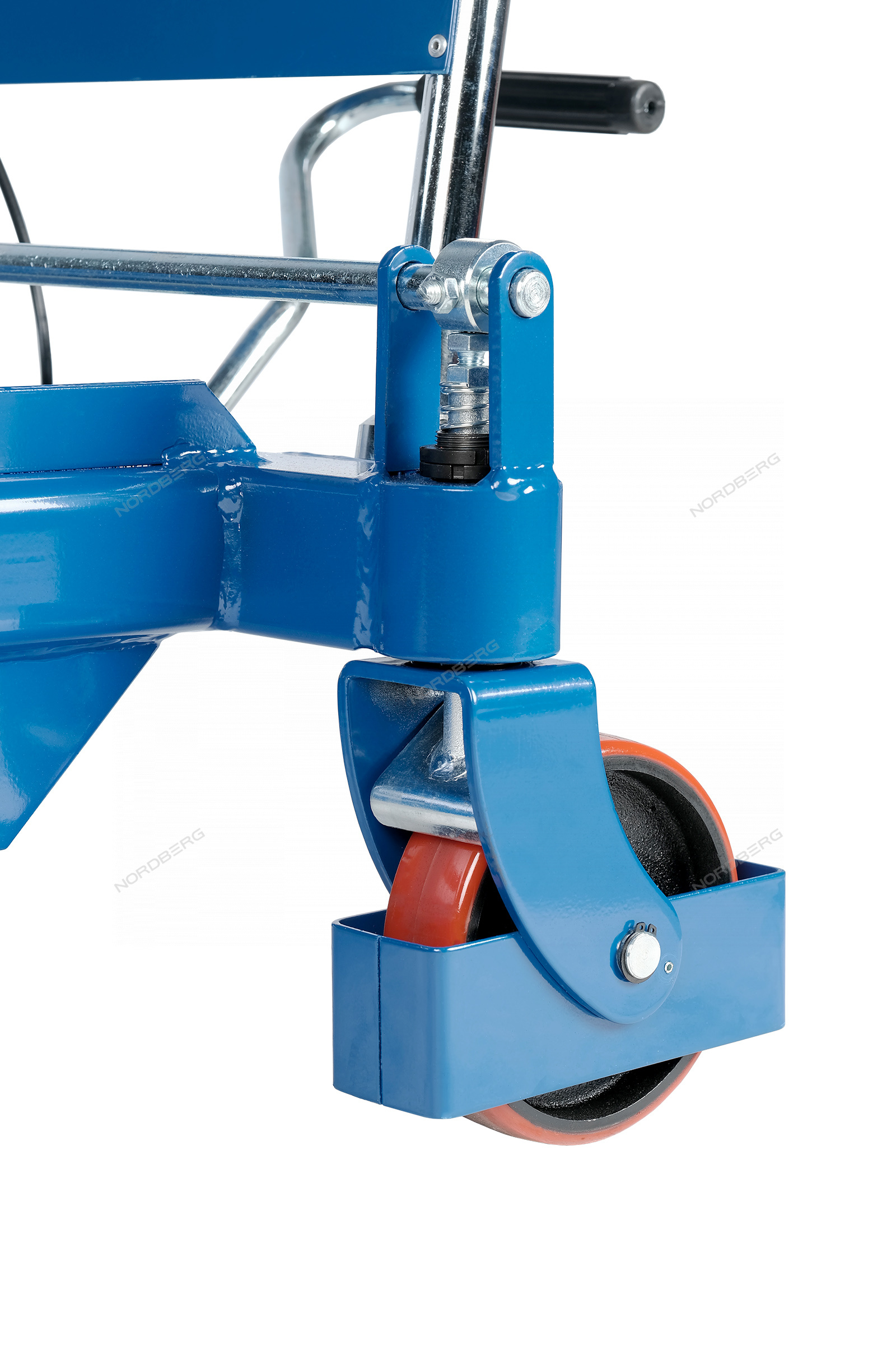 Стол подъемный гидравлический 800 кг NORDBERG N3T801 предназначен для подъема, опускания и перемещения груза. Конструкция представляет собой совмещение платформенной тележки и стационарного подъемного стола. Подъемный стол имеет гидравлический ножной привод, который позволяет произвести быстрый подъем груза. Опускание производится путем нажатия рычага на ручке подъемного стола. Подъемный стол оснащен стопором, который позволяет надежно закрепить положение в поднятом состоянии. Гидравлическая система позволяет столу опускаться плавно, обеспечивая безопасность работ с грузами. Тележки с подъемным столом с ручным приводом мобильны, эффективны и надежны. Они позволяют не только приподнимать грузы, но и перемещать их на расстояния.